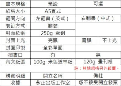 6.本工作室非專職印刷,稿件確認無缺少或錯誤後需7-10個工作天,故無法接收急件需求。