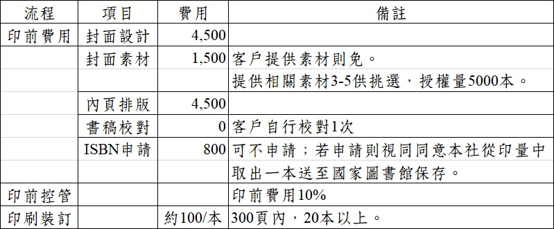 4.如需代辦ISBN,需由印製量中提供一本寄贈到國家圖書館留存。